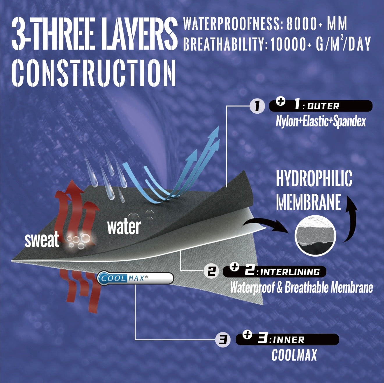 Waterproof socks are waterproof from the toe to just below the cuff of the sock.